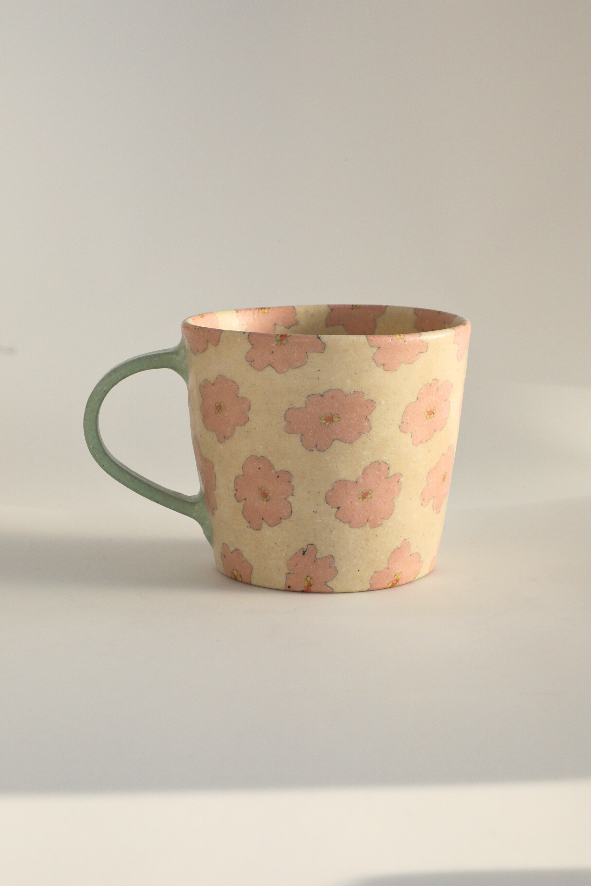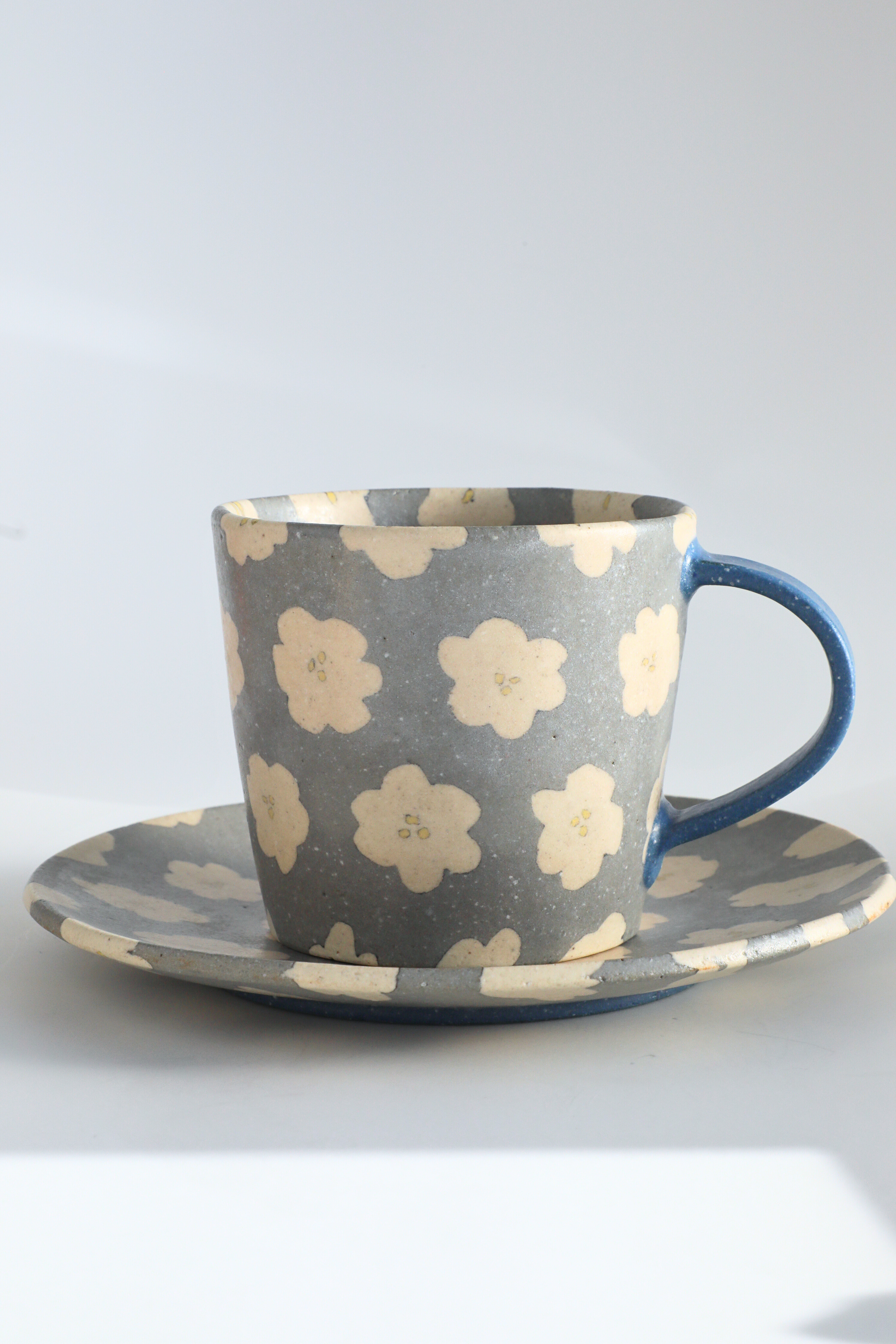 Instead of painting on the surface, Tanaka builds her designs from the inside out. Each pattern emerges naturally as the clay is shaped and cut, revealing floral motifs and gentle lines that appear as if blooming from within. Because of this process, no two pieces are ever exactly alike — each carries its own rhythm, tone, and balance.