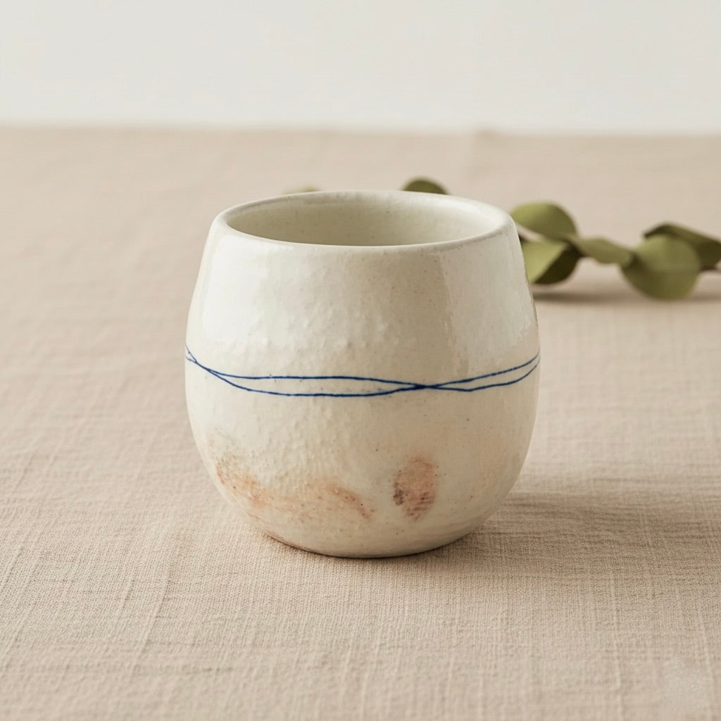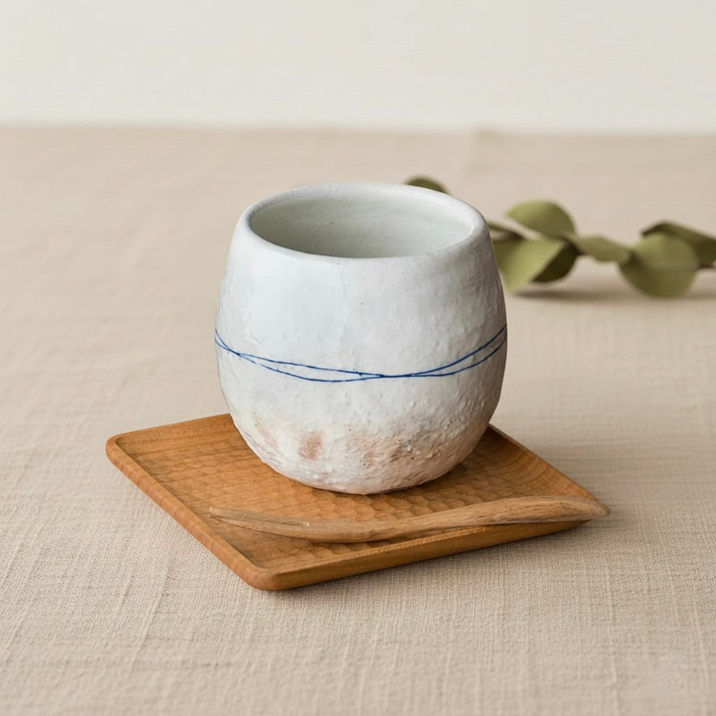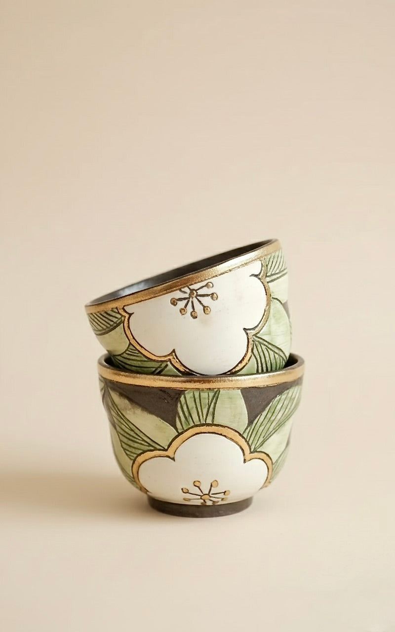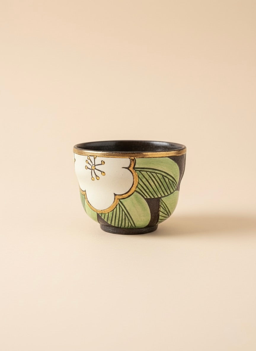 Cool Banana Handcrafted Black Pottery with Gold Detailing Tea Cup - White Camellia