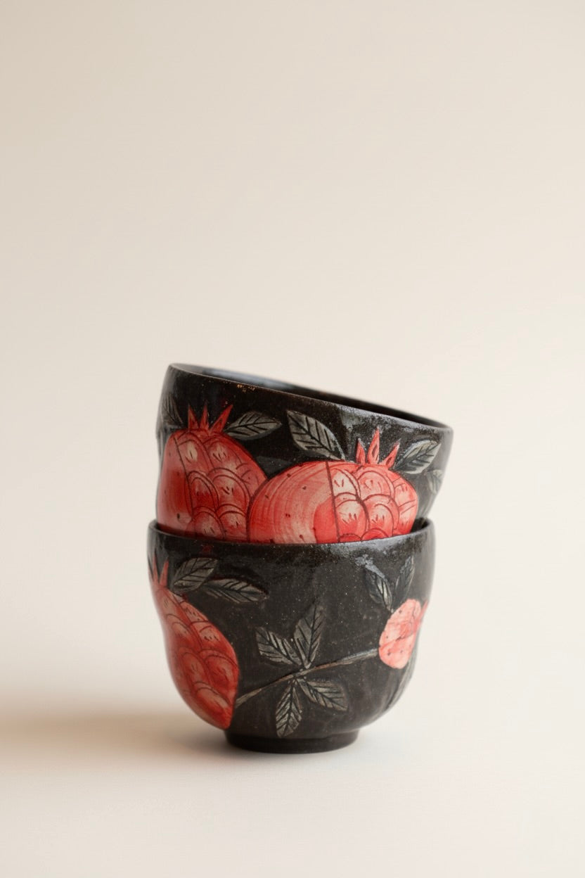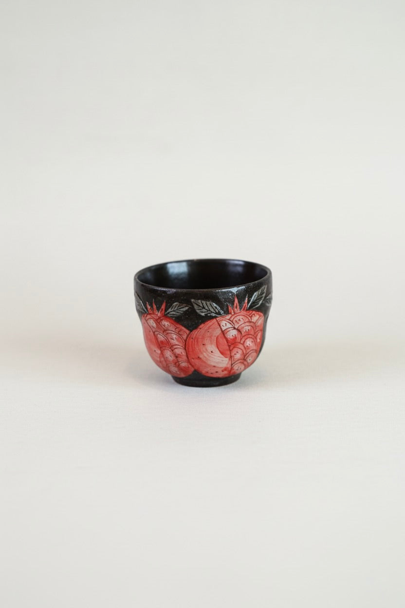 Cool Banana Handcrafted Black Pottery Tea Cup - Pomegranate